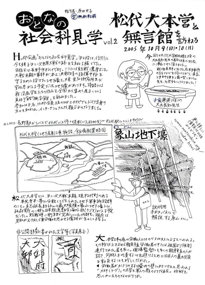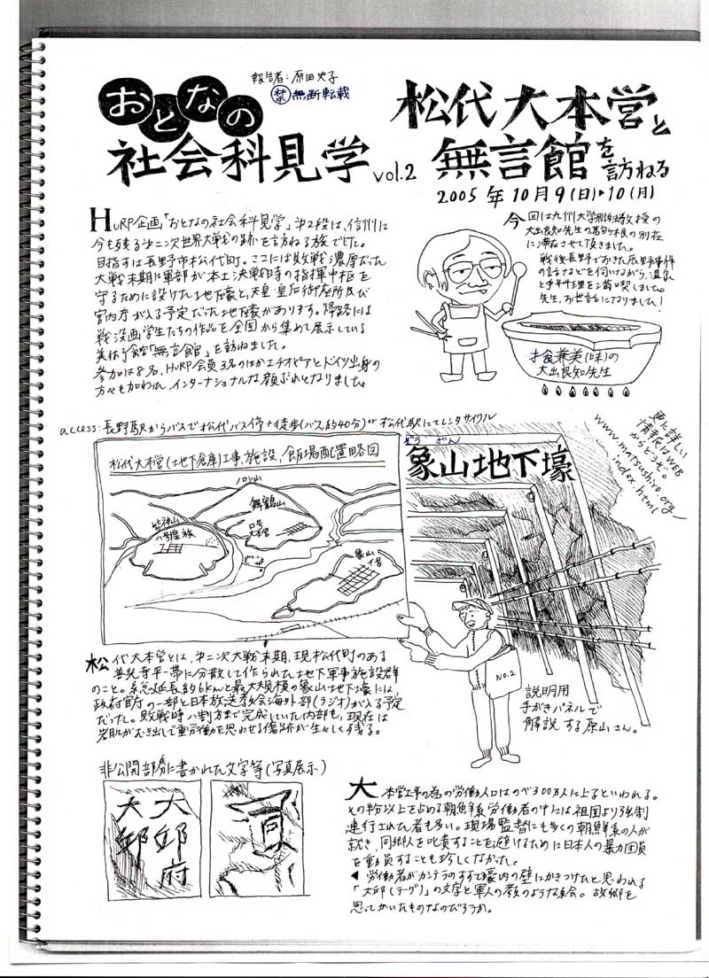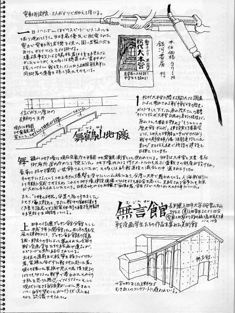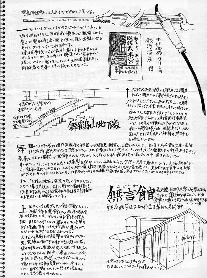 松代記念資料館は日本の戦中の様相をとてもよく展示していました。ここでは訪れた人たちがナマの情報に直接触れて歴史を体感することが出来るうえ、更に興味深いことに第二次大戦に従事した方によって案内をしてもらうことも出来ます。 そのガイドの方が自身の経験に基づいてこの大本営の歴史を説明しようとしているということに私はとても感心し、彼がこうして平和擁護のために努力をしているのは素晴らしいと思いました。